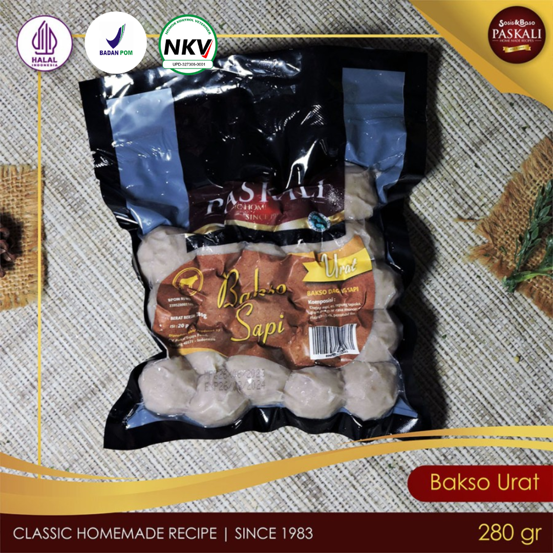 Irisan urat dan daging tetelan kasar dicampur dengan resep klasik Paskali menjadikan rasa bakso sapi urat sangat difavoritkan.