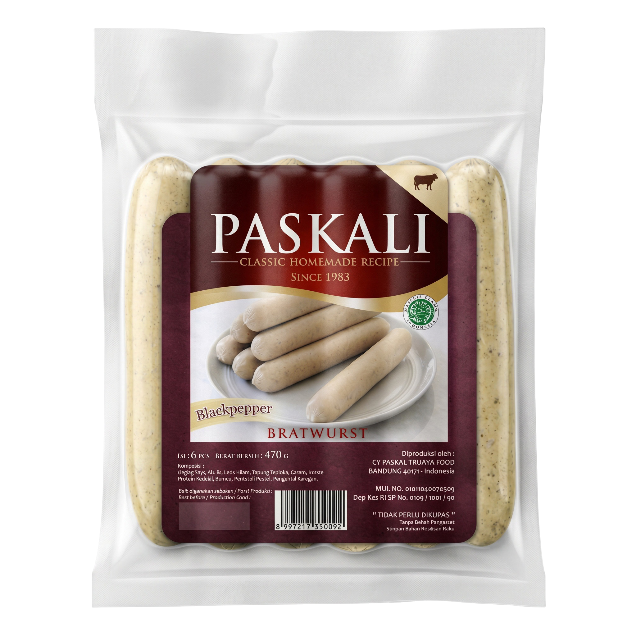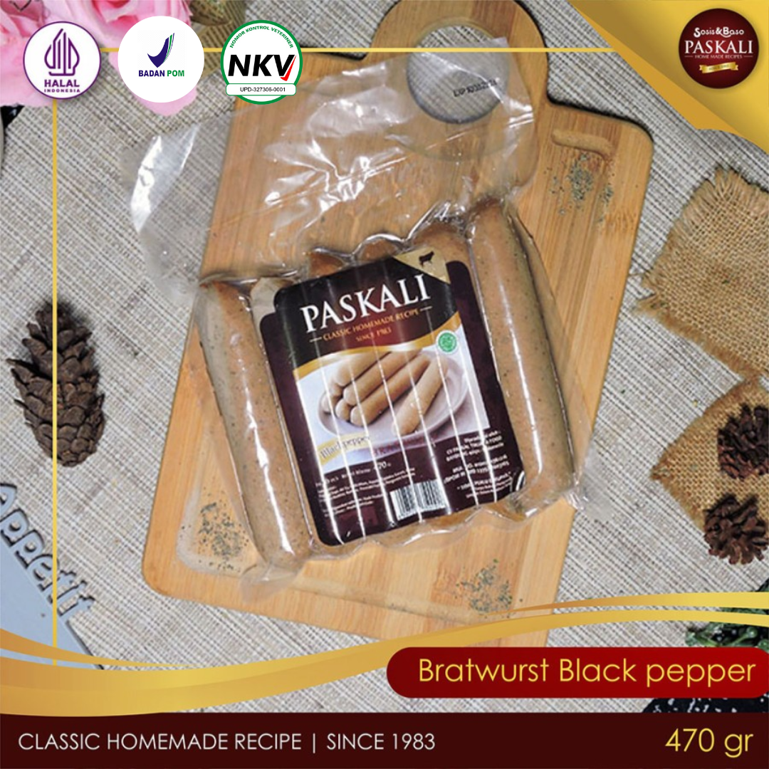 Sosis Bratwurst Blackpepper terbuat dari daging sapi dan rempah pilihan sehingga menghasilkan rasa yang lezat dan nikmat.