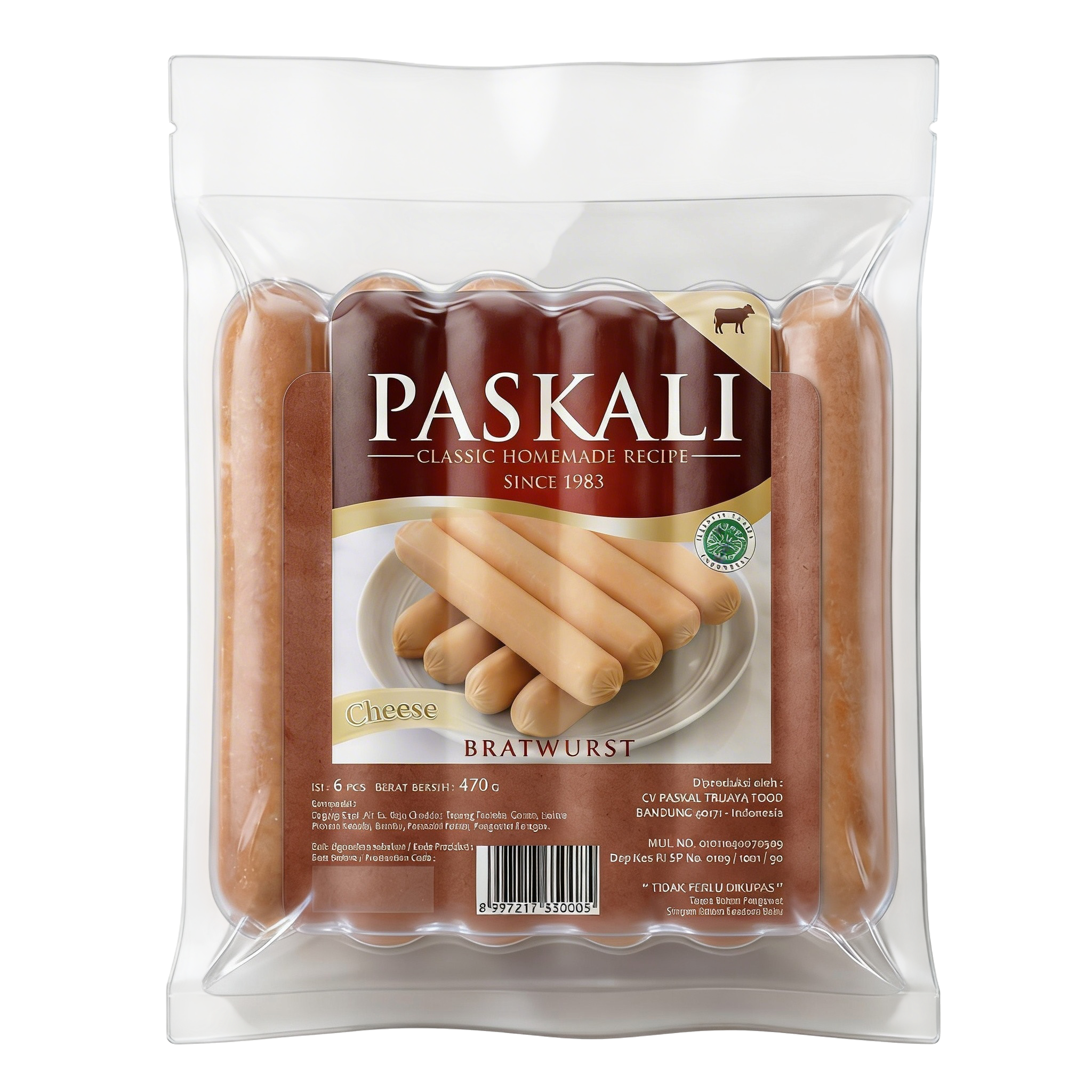 Sosis Bratwurst Cheese Paskali terbuat dari cincangan daging dan bumbu halus, dengan isian keju yang menggoda.